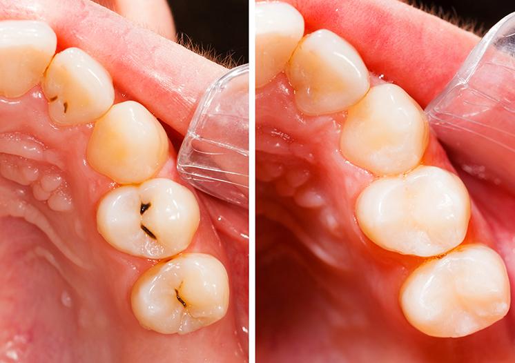 The most obvious benefit of white fillings is the aesthetic results that our dentists are able to achieve because he is able to blend different shades of white filling material to match the natural remaining tooth structure.
