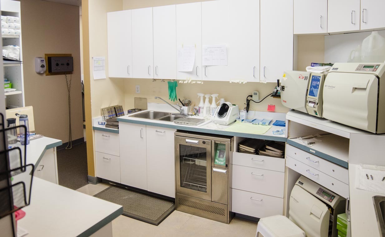 - Surface Decontamination: All surfaces including countertops, dental chairs, stools, light handles and control buttons are disinfected with chemical solutions before and after every patient. These solutions are not only formulated to eliminate infectious bacteria and viruses that could otherwise proliferate on these surfaces, but the chemicals themselves pose no health threat to our patients.